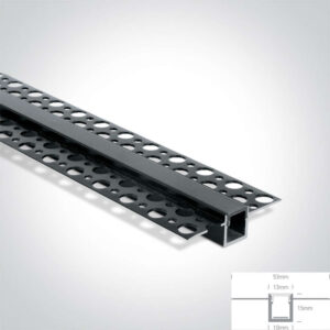 Черен профил за вграждане в гипсокартон One Light 7901TR/B, 2 метра, в комплект с черен дифузер и тапи
