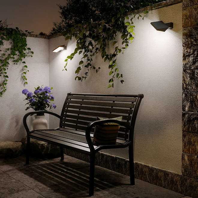Подходящи са външни стенни лампи (аплици), LED и акцентни прожектори, лампи за вграждане в земя или фасада, LED неон за контурно осветление и външни плафони за монтаж под стрехи или навеси.