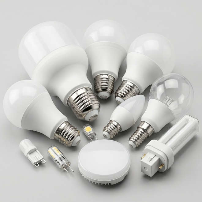 LED крушки с различни форми и видове цокли, подходящи за основно и декоративно осветление в дома, офиса и индустрията.