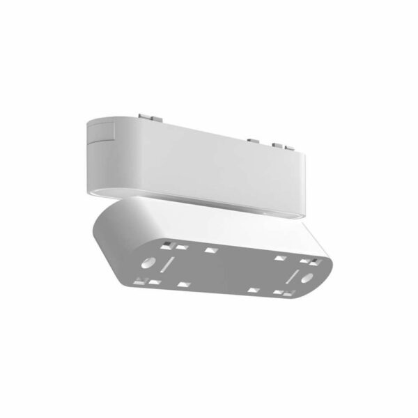 Адаптер с регулиране за линеен магнитен прожектор 6W LVT Luxo 0753 е бяла монтажна основа, предназначена за монтаж на магнитни линейни прожектори от серията LVT Luxo с мощност 6W. Основата ви позволява да намалите височината на монтиране на лампите, но също така ви позволява свободно да регулирате посоката на светене в диапазона до 90 градуса. Корпусът е пластмасова в цвета на прожектора. Той се монтира директно в релсата с помощта на магнитни адаптери, докато прожекторите се щракват в специалния държач на адаптера.