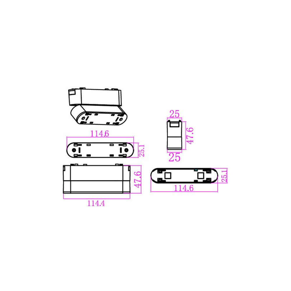 Адаптер с регулиране за линеен магнитен прожектор 6W LVT Luxo 4848 е черна монтажна основа, предназначена за монтаж на магнитни линейни прожектори от серията LVT Luxo с мощност 6W. Основата ви позволява да намалите височината на монтиране на лампите, но също така ви позволява свободно да регулирате посоката на светене в диапазона до 90 градуса. Корпусът е пластмасова в цвета на прожектора. Той се монтира директно в релсата с помощта на магнитни адаптери, докато прожекторите се щракват в специалния държач на адаптера.