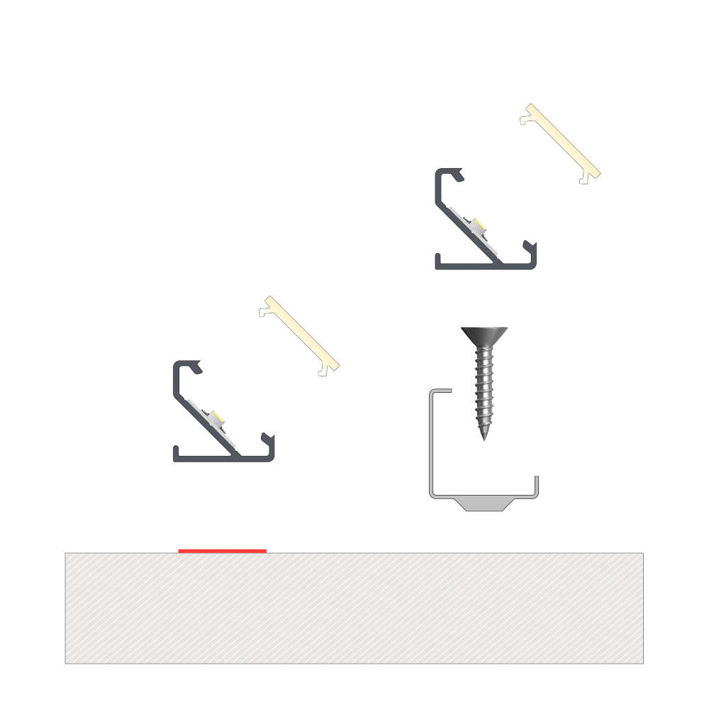 Ъгловият алуминиев профил Lumines Lighting TEKKNI+ 38-2431-30 е създаден за ефективно и стилно интегриране на LED осветление в интериорни пространства. Благодарение на 45° ъгловата си конструкция, профилът позволява прецизно насочване на светлината, което го прави идеален за осветяване на кухненски плотове, шкафове, витрини и работни повърхности.