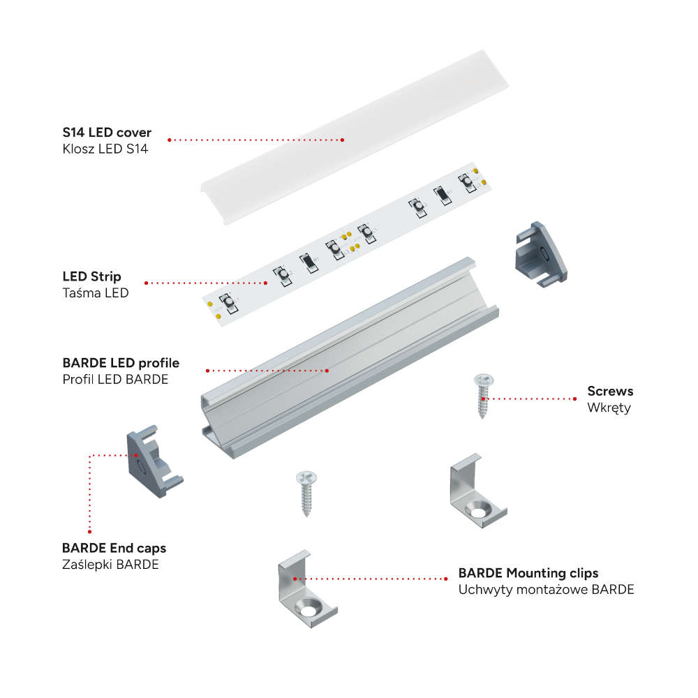 Профилът е съвместим с различни видове дифузери – PVC или PMMA, налични в прозрачен, матиран или млечен вариант (с поръчка). Те осигуряват равномерно разпределение на светлината и подобряват визуалния комфорт, като елиминират ефекта на отделните LED точки.