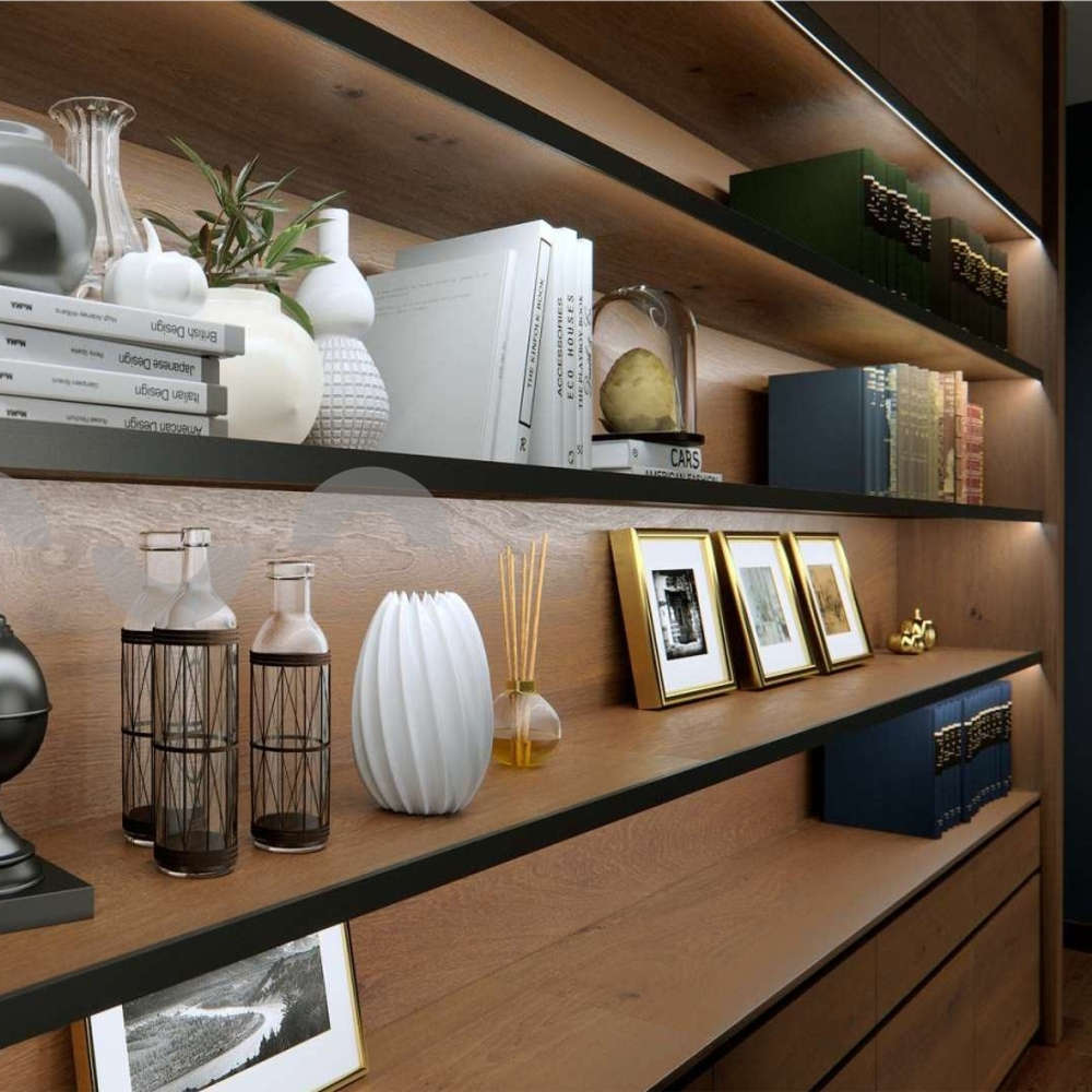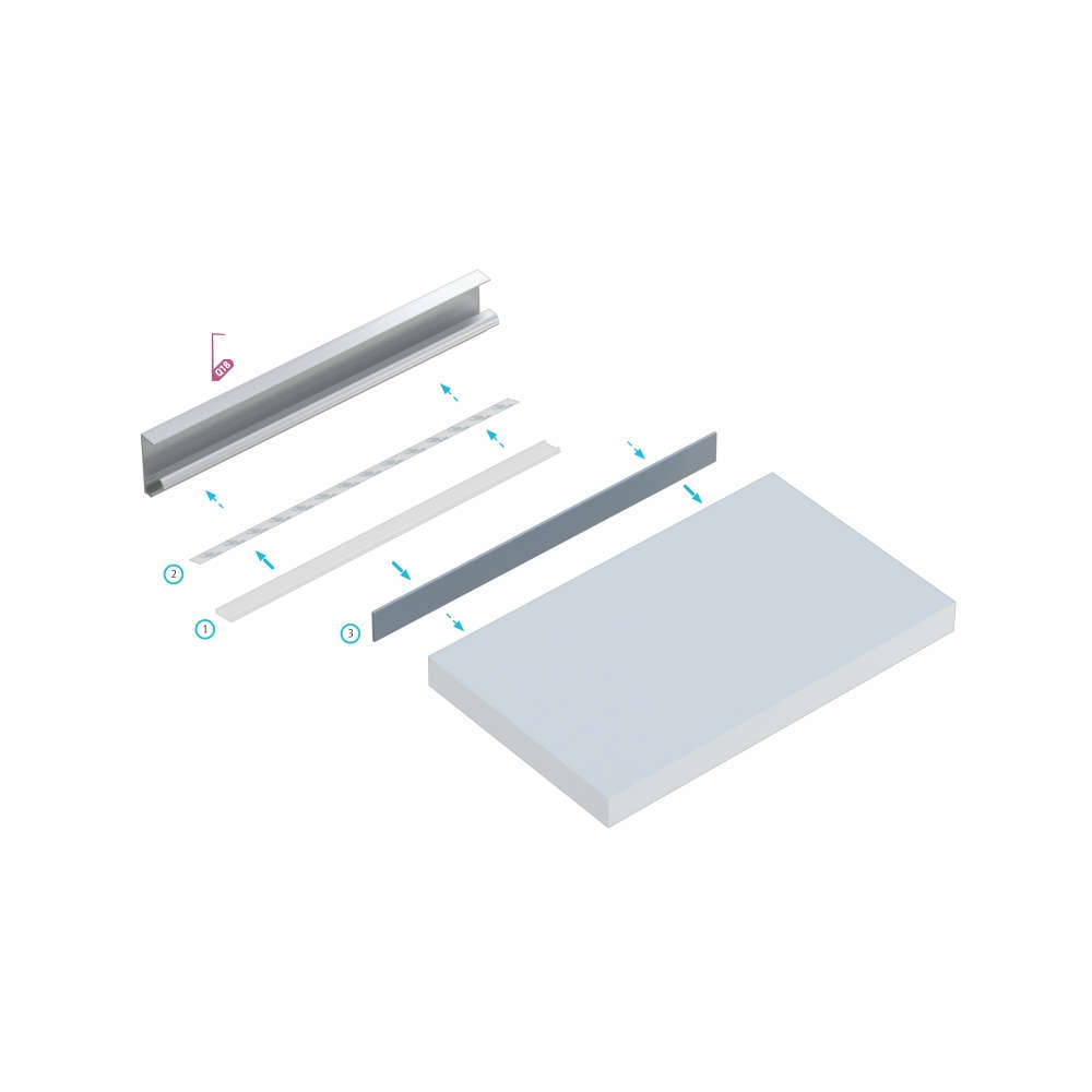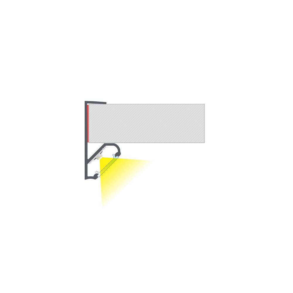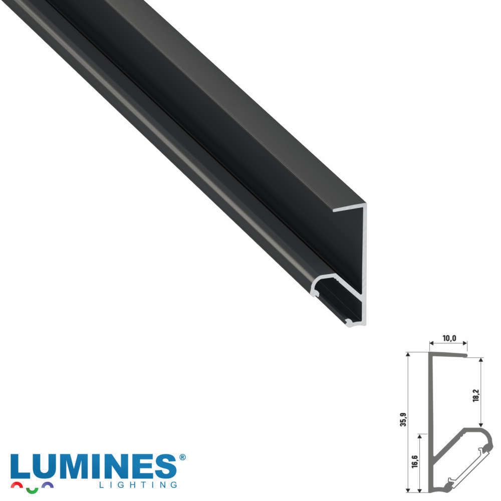 Алуминиев профил за мебелно осветление 2 метра, анодизиран черен, насочване на 45°, без дифузер, за плоскости с дебелина 18.2мм.