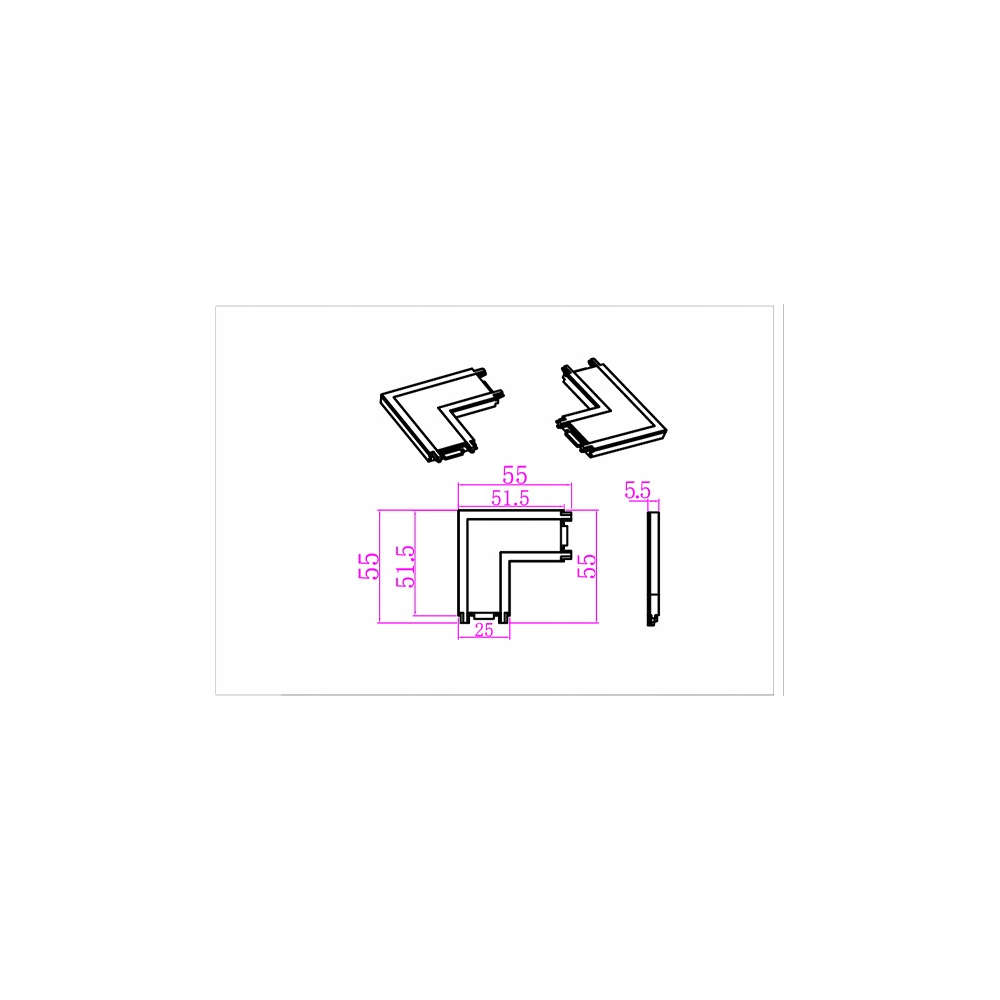 Ъглов конектор за мини магнитна система LUXO LVT 0416, предназначен за 48V шина Luxo. Осигурява надеждна електрическа връзка и стабилно съединяване при изграждане на прав ъгъл 90°. Идеален за конфигуриране на гъвкави магнитни трасета в търговски, офис и жилищни пространствa.