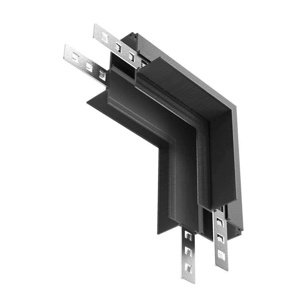 Ъглов механичен конектор Maytoni Exility TRA034ICL-42.12B e предназначена за вграждане в стени и тавани от гипсокартон. Този 90 градусов механичен конектор е предназначен за свързване на две магнитни релси монтирани в таван/стена от серията build-in Maytoni Exility.