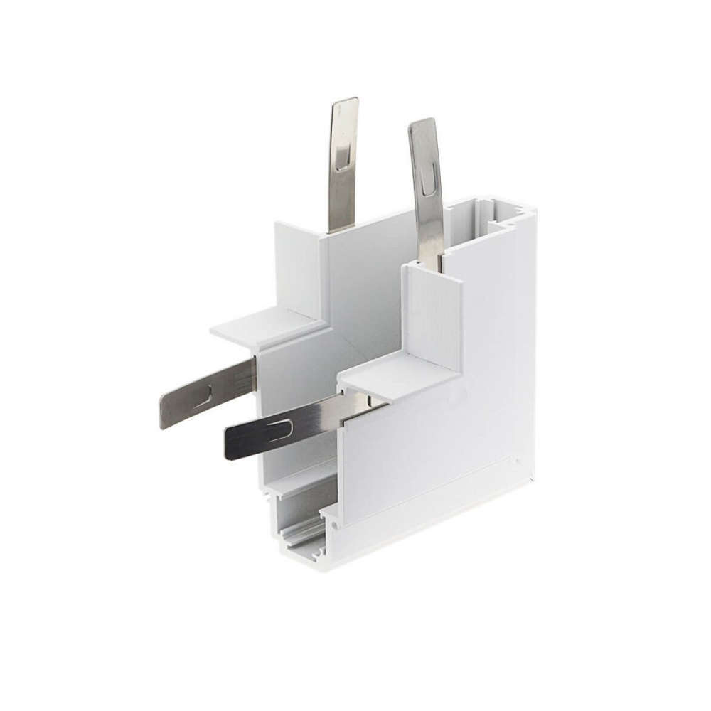 Ъглов механичен конектор за вграждане Optonica 5299 е необходим за свързване на две с магнитни шини в ъглова конфигурация от 90 градуса, монтирани на стена и таван. Подходящ е за магнитни релси за вграден монтаж R35-A White.