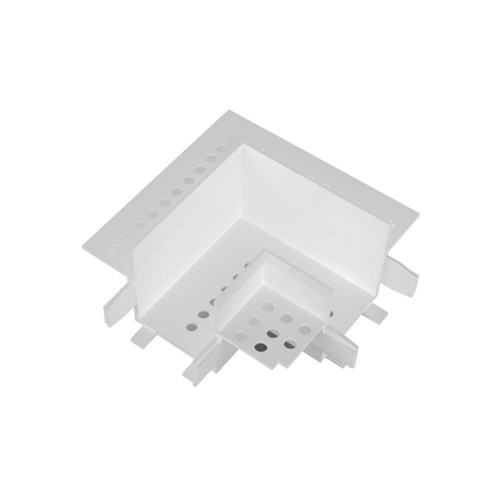 Ъглов конектор, предназначен за магнитни шини LVT Luxo, вградени в гипсокартон. Бял конектор за механично свързване на две шини на 90 градуса на тавана. Ако искате да направите токова връзка между тях, трябва допълнително да използвате електрически гъвкав конектор. Ъглова връзка таван-таван за магнитни шини за вграждане LVT Luxo 0412 е изработен от висококачествена пластмаса.