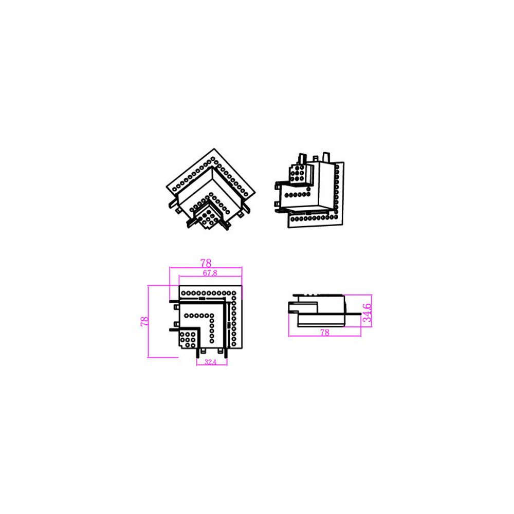 Ъглов конектор, предназначен за магнитни шини LVT Luxo, вградени в гипсокартон. Черен конектор за механично свързване на две шини на 90 градуса на тавана. Ако искате да направите токова връзка между тях, трябва допълнително да използвате електрически гъвкав конектор. Ъглова връзка таван-таван за магнитни шини за вграждане LVT Luxo 1789 е изработен от висококачествена пластмаса.