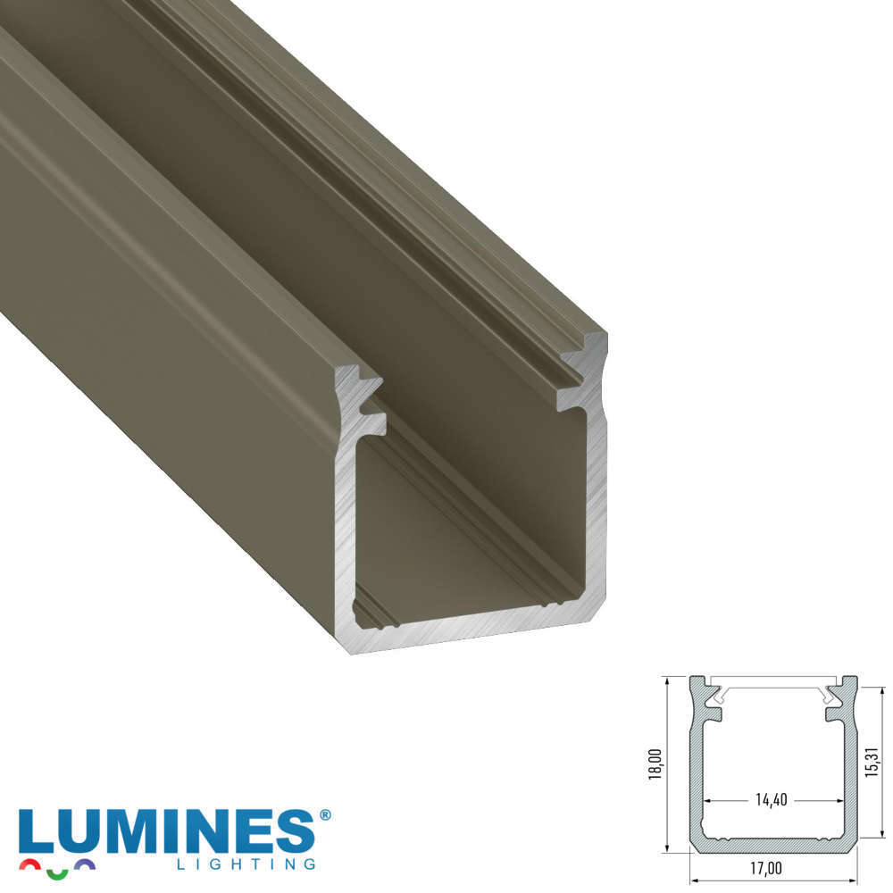 Дълбок профил за LED лента, един метър, за повърхностен монтаж, цвят Inox анодизиран, без дифузер и крайни тапи.