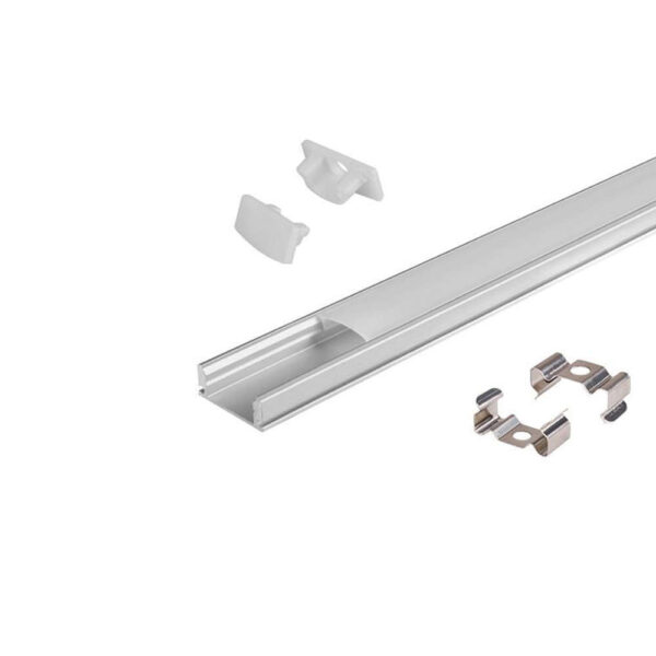 Алуминиев профил XD-FF400AM за LED лента - 2м е предназначен за повърхностен монтаж на LED ленти, осигурявайки естетично и функционално решение за осветление. С дължина от 2 метра и изработен от висококачествен анодизиран алуминий, профилът гарантира дълготрайност и ефективно разсейване на топлината, което удължава живота на LED лентите. Млечният дифузер равномерно разпределя светлината, намалявайки отблясъците и създавайки приятна осветеност. Подходящ е за осветление в кухни, дневни, офиси и други вътрешни пространства. Монтажът е лесен и може да се извърши с помощта на монтажни скоби, винтове или двойнозалепваща лента.