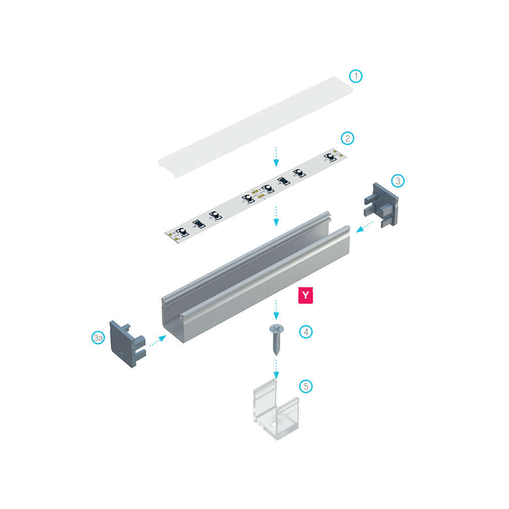Черен профил за LED лента 3 метра, дълбок, дифузери и крайни тапи с отделна поръчка