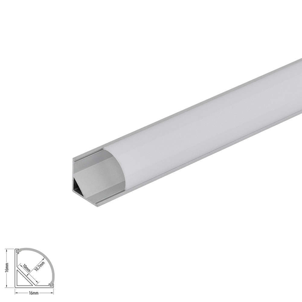 Ъглов LED профил 2 метра, в комплект с бял капак, 2 монтажни скоби и 2 крайни тапи