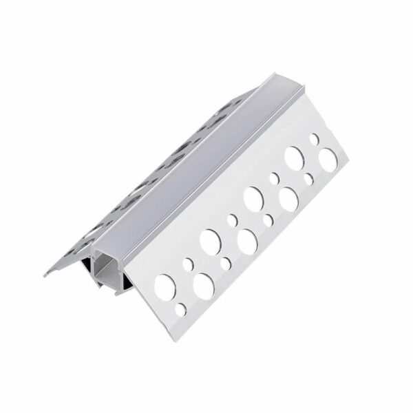 Алуминиев профил за LED лента за вграждане в гипсокартон външен ъгъл Elmark 99ACC62. Профилът е подходящ за използване с LED ленти 80 мм. Окомплектован е с PVC матиран бял дифузер.
