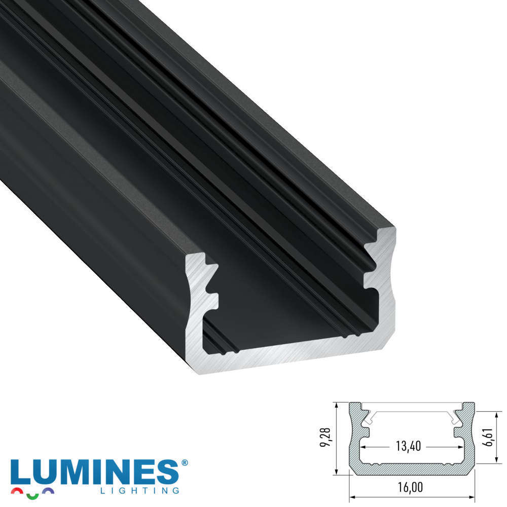 Алуминиевият профил Lumines A е профил за повърхностен монтаж с минималистични размери, предназначен за лесен и бърз монтаж на труднодостъпни места. Идеален е за дискретно осветление в кухни, магазини и осветителни плотове, парапети. Lumines A е идеално подходящ за декоративно фоново осветление в мебели и интериорни декорации.