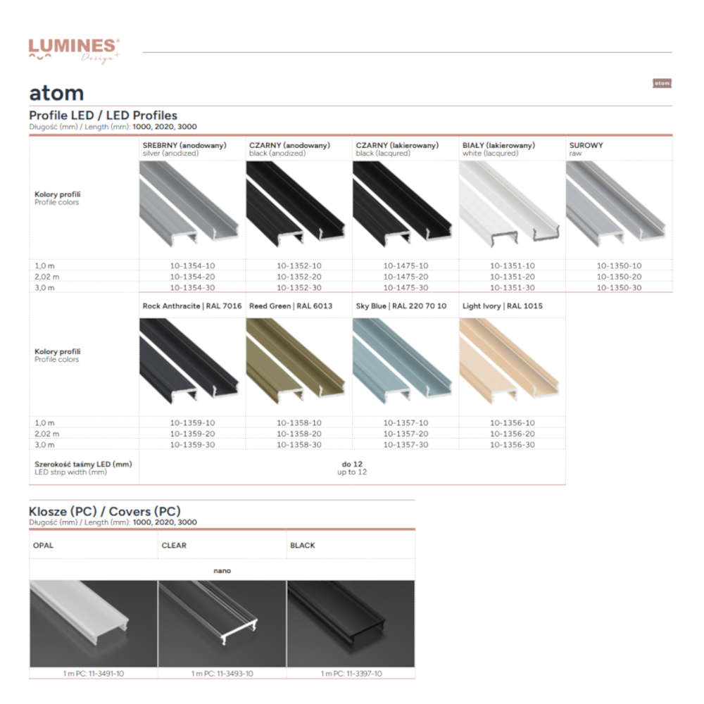 Алуминиевият LED профил Lumines Type Atom се предлага за поръчка в дължини 1, 2 и 3 метра и е отличен избор за мебели, ниши, тавани, витрини и архитектурно LED осветление.