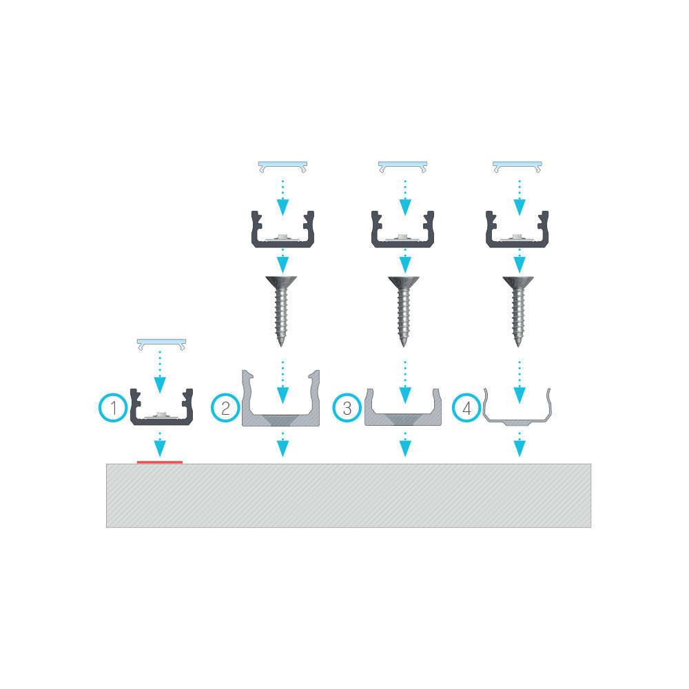 Алуминиевият профил Lumines A е профил за повърхностен монтаж с минималистични размери, предназначен за лесен и бърз монтаж на труднодостъпни места. Идеален е за дискретно осветление в кухни, магазини и осветителни плотове, парапети. Lumines A е идеално подходящ за декоративно фоново осветление в мебели и интериорни декорации.
