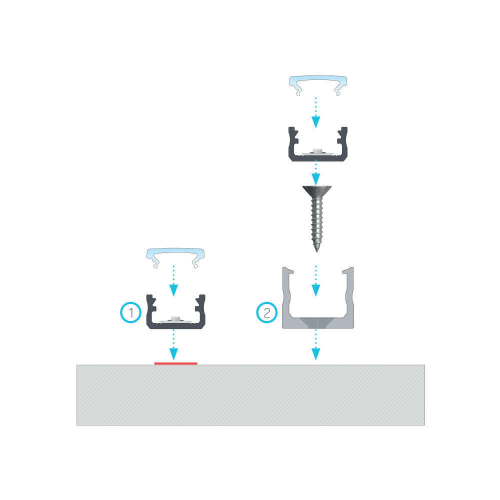 Алуминиевият профил Lumines A е профил за повърхностен монтаж с минималистични размери, предназначен за лесен и бърз монтаж на труднодостъпни места. Идеален е за дискретно осветление в кухни, магазини и осветителни плотове, парапети. Lumines A е идеално подходящ за декоративно фоново осветление в мебели и интериорни декорации.