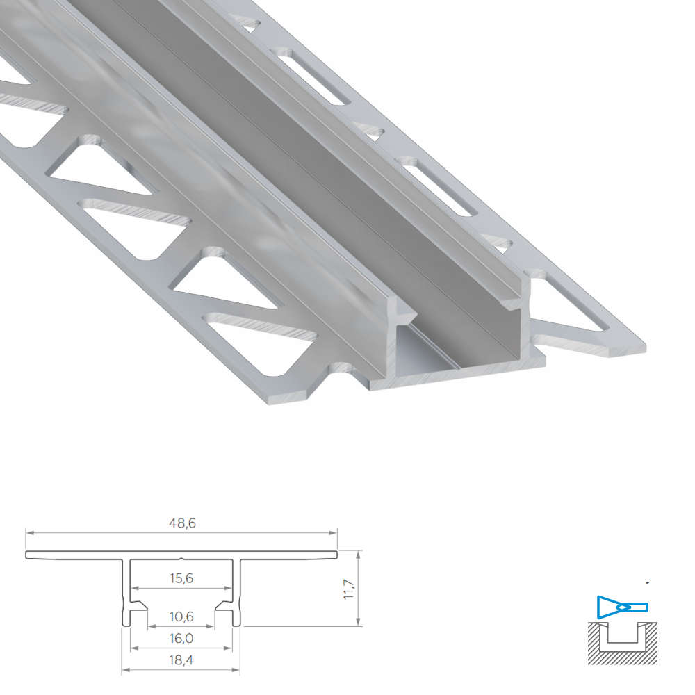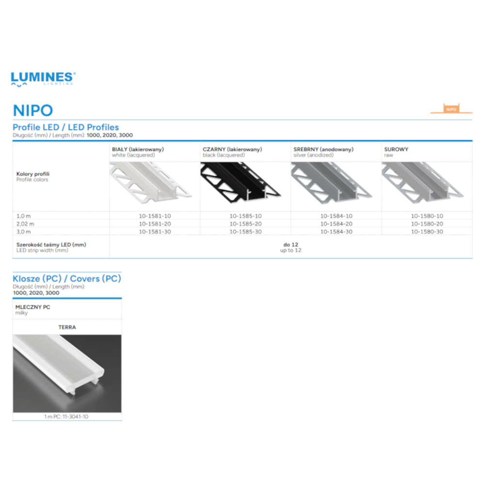 Lumines Lighting Nipo 10-1580-30 е алуминиев профил за LED ленти, предназначен за вграждане в плочки и настилки. Подходящ за LED ленти до 15 мм, профилът е проектиран да издържа пешеходно натоварване и да осигурява чист архитектурен завършек. Отличен избор за подово и стеннo осветление в бани, коридори и обществени пространства.