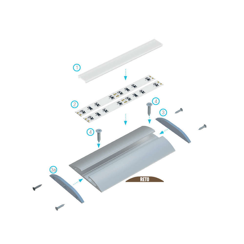 Lumines RETO е професионален LED профил с възможност за регулиране на ъгъла на осветление, като се използват различни крайни тапи с различна геометрия и дифузери за LED ленти. Подходящ за основно или декоративно LED осветление в дома, офиса, хотела. За професионален завършек използвайте COB LED ленти. Възможност за инсталиране на 2 лед ленти с широчина по 10мм всяка. Хомогенно светяване без видими точки на диодите. Размер 2 метра.