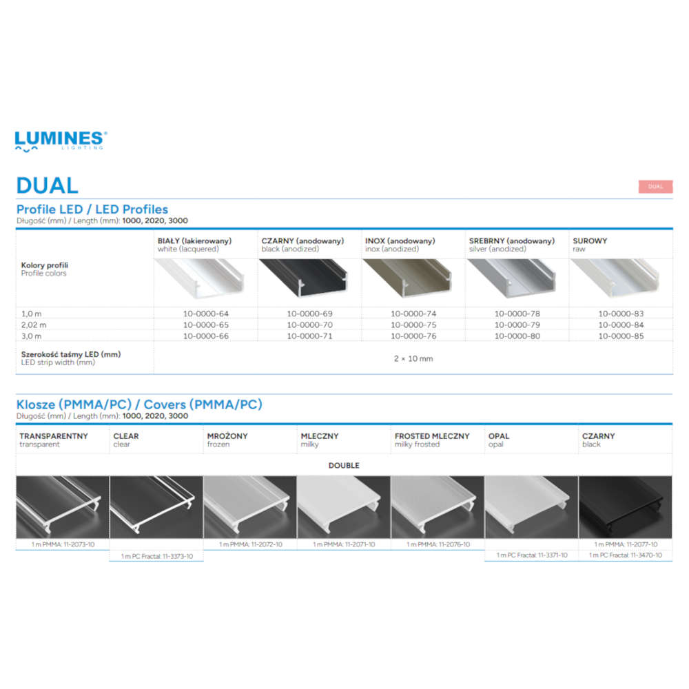 Алуминиев профил за LED ленти Lumines Lighting 10-0000-71 Type DUAL с дължина 3 метра в черен цвят е универсално решение за изграждане на линейно осветление. Подходящ за повърхностен, вграден или окачен монтаж, профилът осигурява стабилна основа и добро охлаждане на LED лентата. Предлага се в цветове бял, черен, бронз и сребрист, както и в дължини 1, 2 и 3 метра. Дифузери, крайни тапи и монтажни клипсове се поръчват отделно, което позволява гъвкаво конфигуриране според проекта.