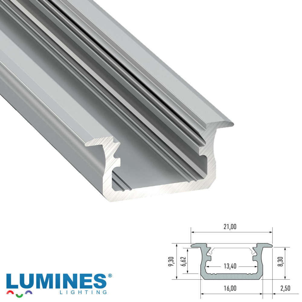 Профил за вграждане 2 метра, за монтаж на лед лента с размер 12 милиметра, цвят сребрист