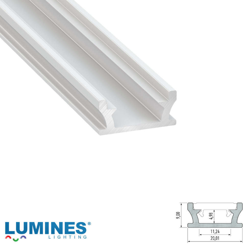 Архитектурен профил за вграждане в под, 1 метър, алуминий, цвят бял лак, без дифузер и крайни тапи (опции с поръчка)