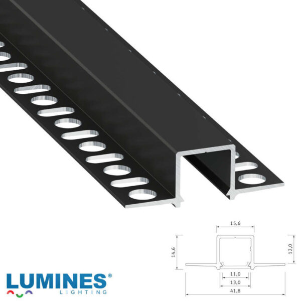 Черен профил за вграждане в гипсокартон, 3 метра, за LED ленти с ширина до 12 мм, без дифузер и крайни тапи
