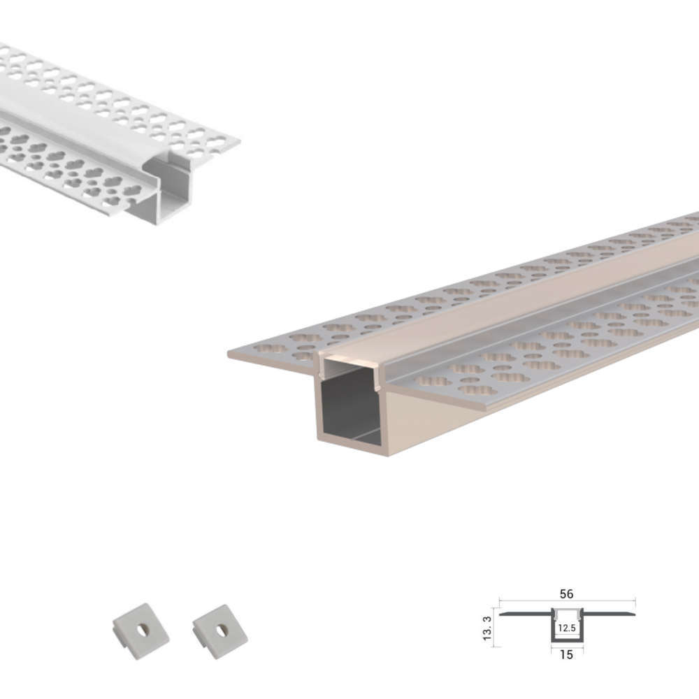АЛУМИНИЕВ ПРОФИЛ ЗА LED ЛЕНТА ЗА ВГРАЖДАНЕ В ГИПС И ПЛОСКОСТИ, 2 МЕТРА С БЯЛ ДИФУЗЕР, КОМПЛЕКТ ТАПИ