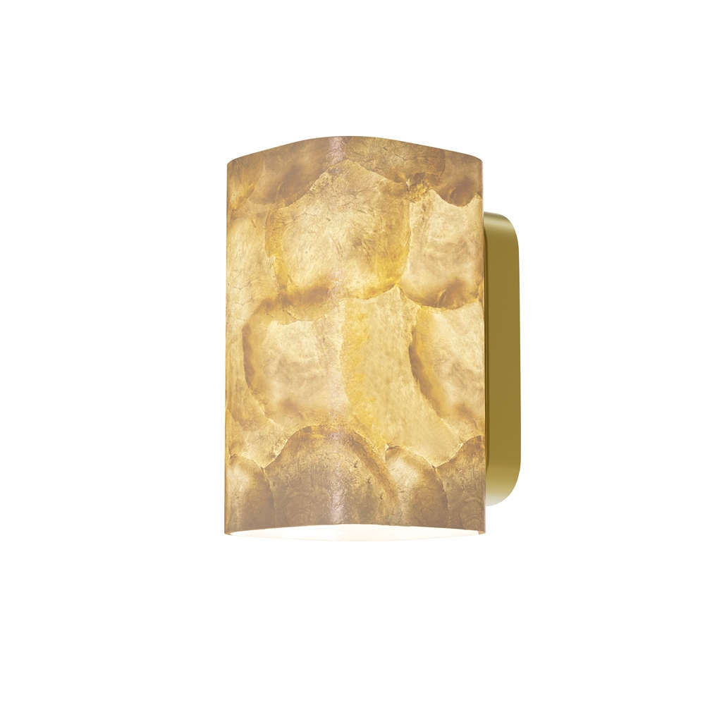 Абажурът е изработен от естествени Capiz черупки – фин полупрозрачен материал от морски произход. В изключено състояние изглежда светъл и деликатен, със сатенено-матова повърхност. При включване светлината преминава през структурата на материала и създава топъл, мек алабастров блясък с характерна дълбочина и лек перлен оттенък.