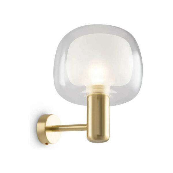 Модерна стенна лампа от алуминий и стъкло, фасунга Е14, цвят месинг/опал