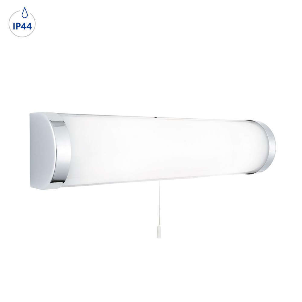 Стенна лампа за баня с ключ, IP44, фасунга 2xЕ14, метал и стъкло, цвят хром