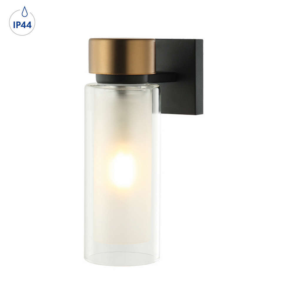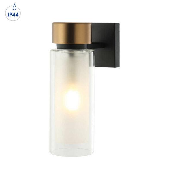 Осветително тяло за стена IP44, фасунга Е14, метал и стъкло, цвят черен мат и античен месинг