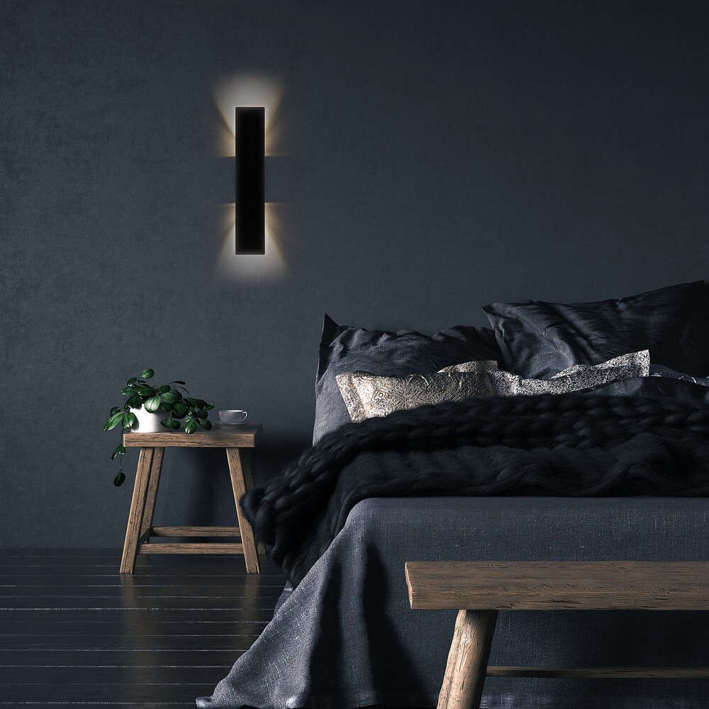 Oсветително тяло за стена 220W, 6W, 470lm, 3000K, двустранно светене, метално тяло, цвят черен мат