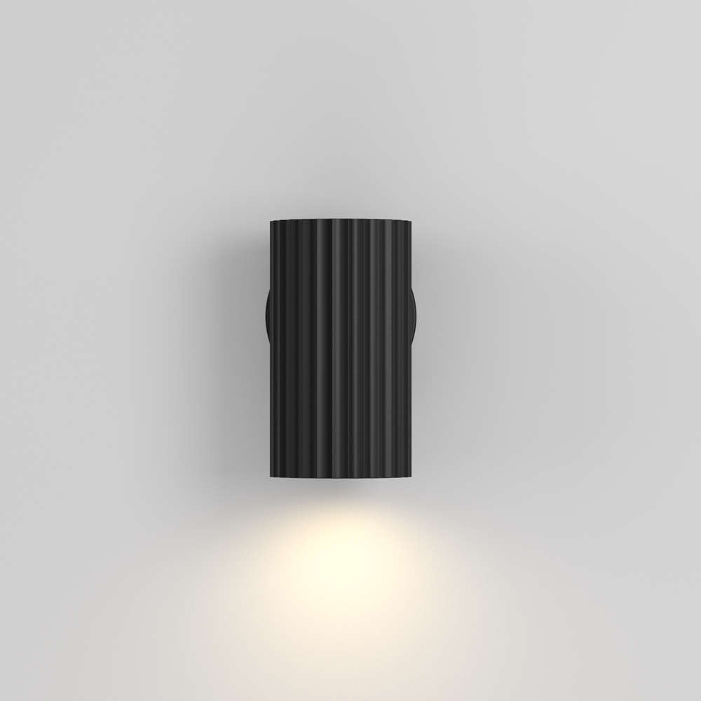 Апликът за стена Maytoni Calipso C106WL-01-GU10-B е компактно техническо осветително тяло от алуминий, създадено за акцентно насочено осветление. Черното тяло с вертикален релеф е вдъхновено от антични колони и се използва успешно във всяко модерно и стилно пространство.