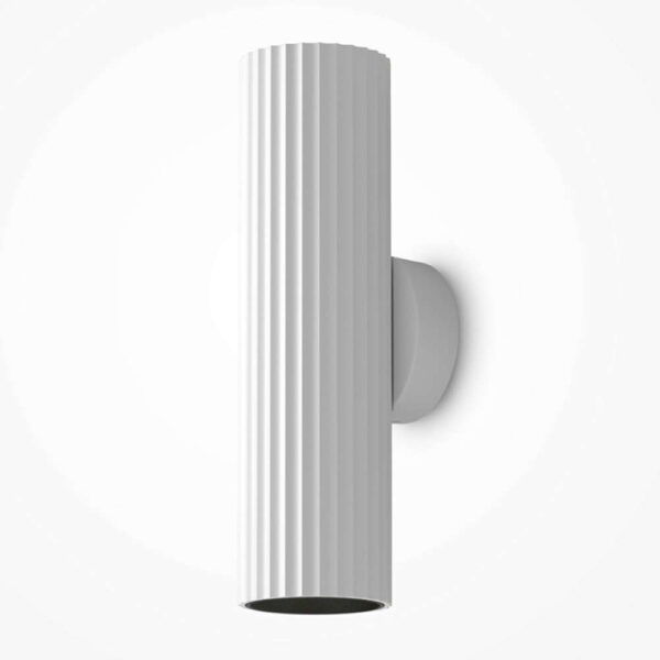 Стенният аплик Maytoni Calipso C106WL-02-GU10-W е елегантно техническо осветително тяло, което излъчва светлина едновременно нагоре и надолу. Белият релефен корпус от алуминий придава архитектурна визия и е подходящ за модерни и минималистични интериори.