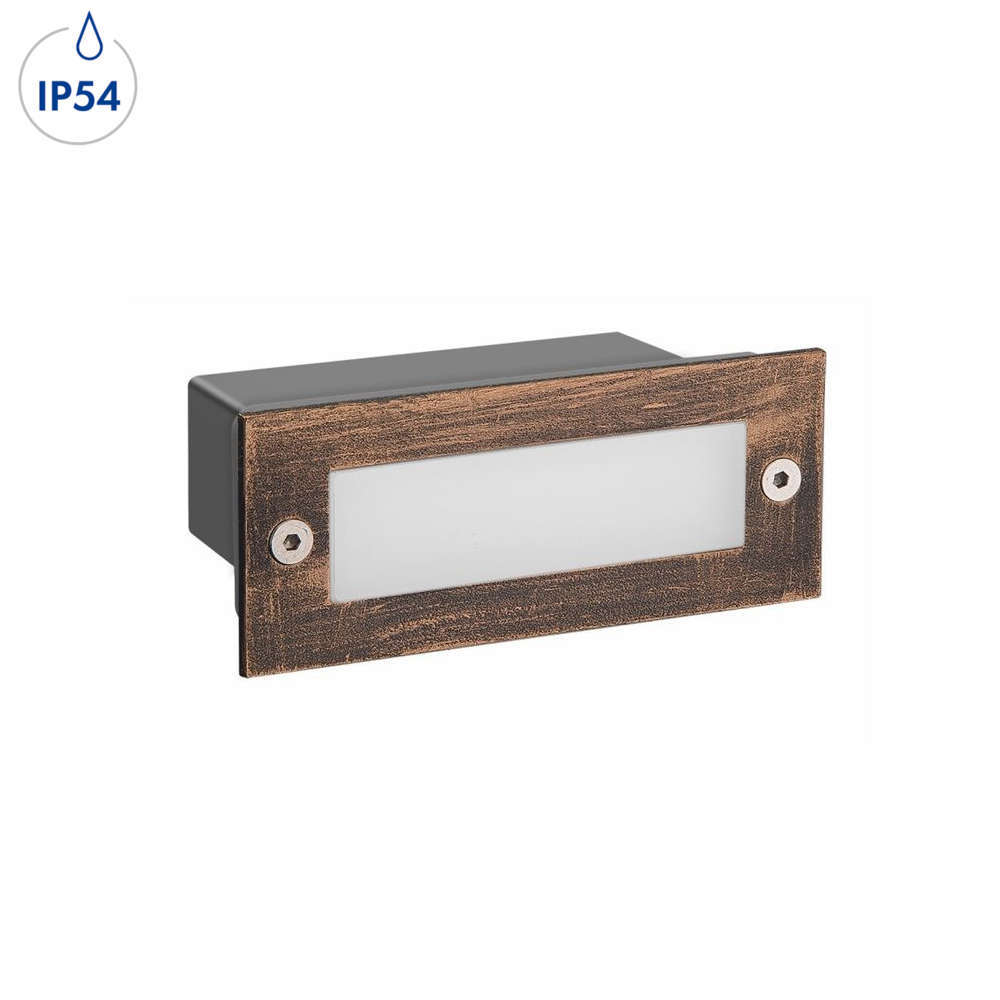 LED луна за вграждане в стена, топла светлина, влагозащитена IP54, диоди Cree, правоъгълно тяло в кафяво-ръждив цвят