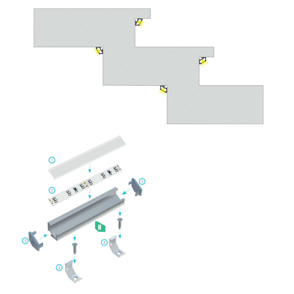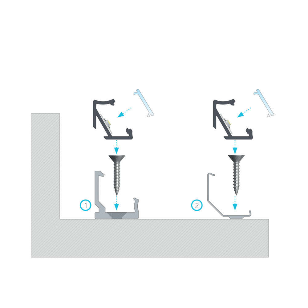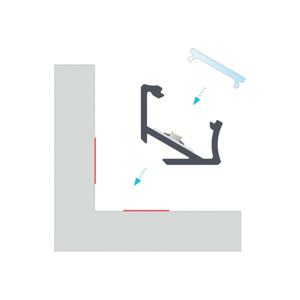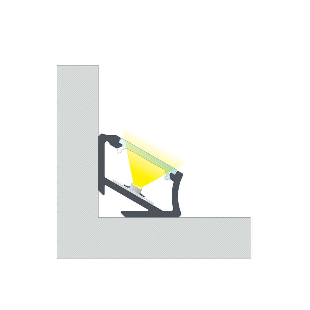 Черен ъглов профил за повърхностен монтаж, три метра, черен мат, дифузери и аксесоари с поръчка