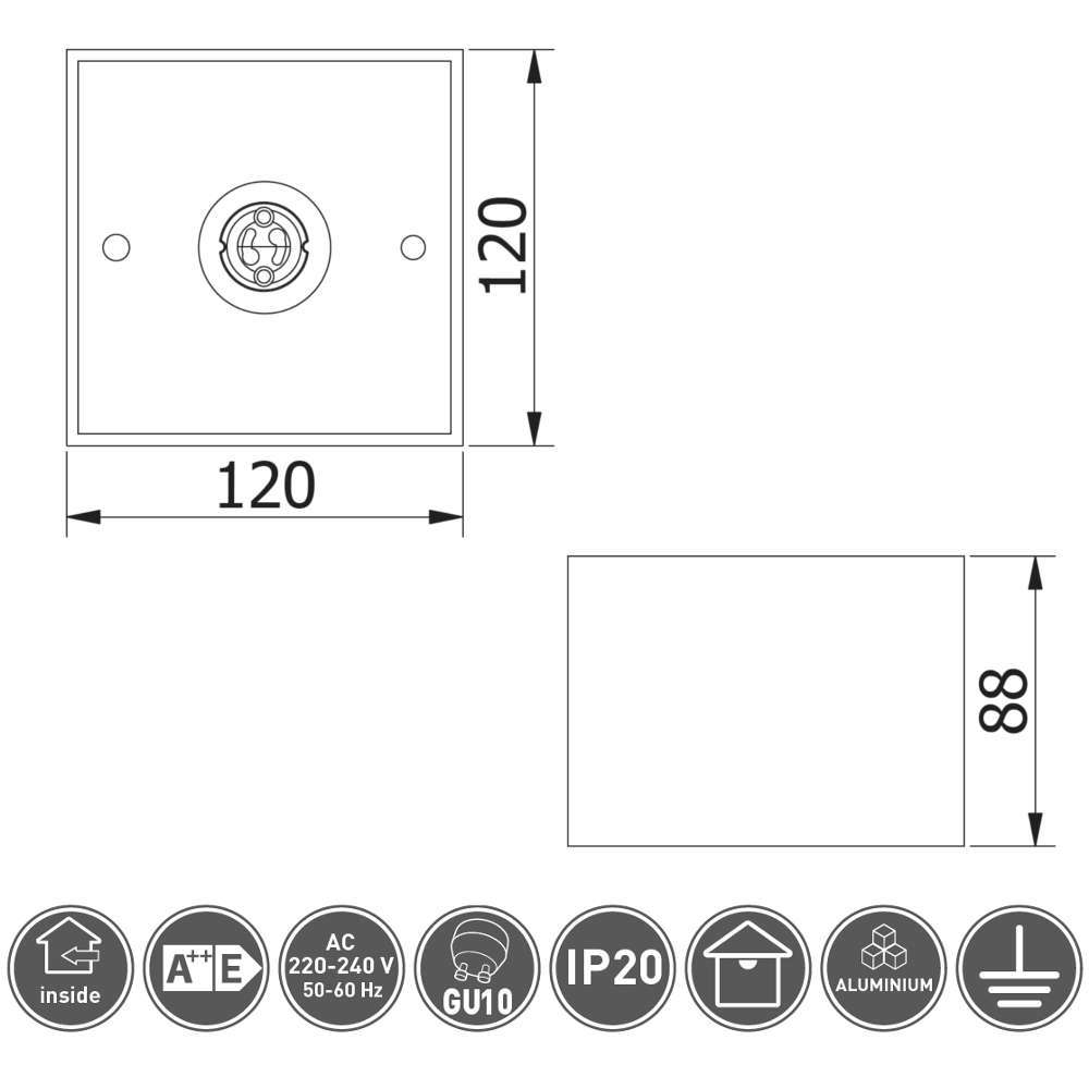 Бяла карданна луна за външен монтаж на таван GTV SAKURA OS-SAKES111KW-10, предназначена за употреба с LED лунички с форма AR111, цокъл GU10 и максимална мощност 20W. Луната е с формата на призма с размери на основата 112х112 мм. и височина 88 мм. Доставя се оборудвана само с фасунга GU10 без лампа в комплекта. Изработена от алуминий в матиран бял цвят, GTV OS-SAKES111KW-10 придава модерен вид на всяко помещение с изчистения си дизайн. Осветителното тяло е подходящо за интериорно осветление в дома, офиса, магазини, хотели и всякакви обществени сгради.
