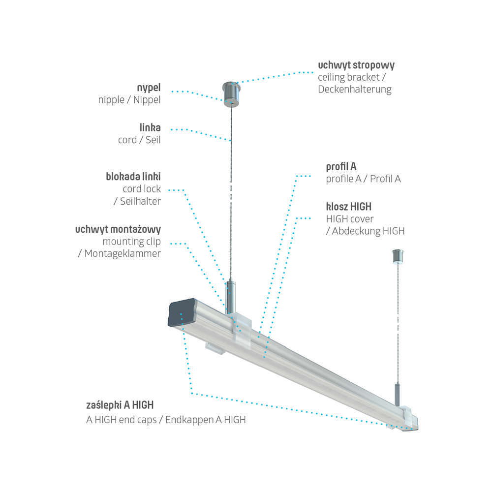 Профилът се продава без дифузер, крайни тапи и монтажни клипсове, които са с поръчка и се поръчват отделно!