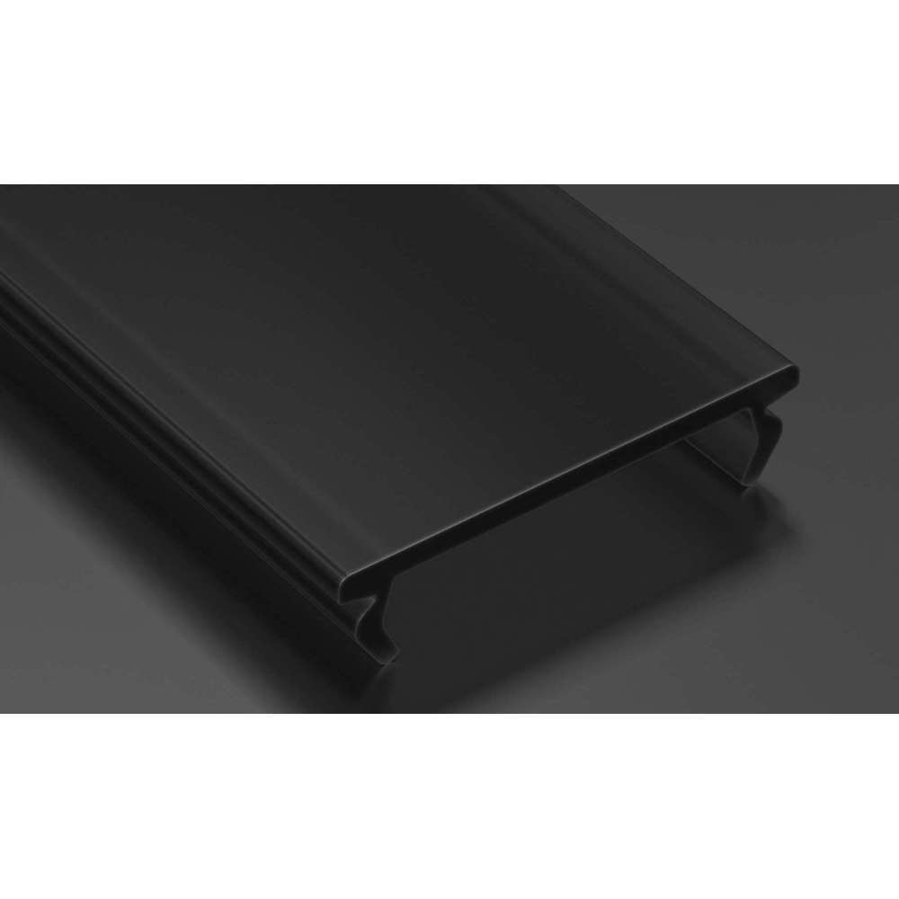 Черен дифузер за алуминиеви профили Lumines BLACK COVER DOUBLE 11-2077-30 с дължина 3 метра. Дифузерът е с клик монтиране и е подходящ за използване с алуминиеви профили Lumines Double или за монтиране в улей с ширина 22 mm. Изработен от PMMA с относително ниска пропускливост на светлина от 23% и издръжливост на температури -20°C | + 70°C. Черният дифузер е дизайнерско решение за LED осветителни тела и подсветки с широчина на фрезования улей 22mm, които остават черни при изключен светлинен източник.