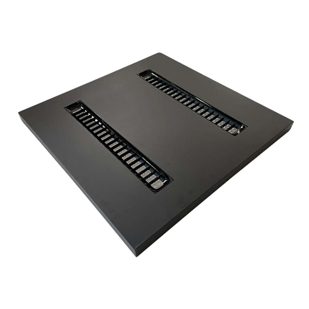 Черен LED панел Ultralux LPXB664040 (60×60 см) осигурява професионално осветление с оптична система 90° и ниско ниво на заслепяване UGR<19. Подходящ за вграден, окачен или повърхностен монтаж. Съвместим с димиращ драйвер (закупува се отделно), което позволява регулиране на светлината според нуждите на офиси, магазини и модерни интериори.