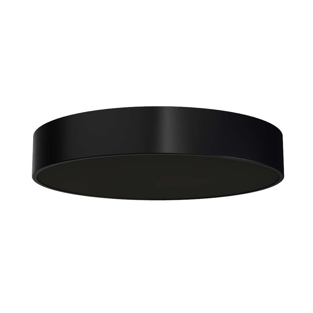 Черният LED плафон KRUGER 3 FC Osmont KRU60646 е с мощност 48W, 890 lm и 4000K светлина. Корпус от метал в черно (RAL9005) и черен поликарбонатен абажур, който осигурява равномерно осветление за вътрешни пространства. Серията плафониери с черни дифузери предлагат опции 3000K или 4000K, димиране и управление чрез DALI или Bluetooth, както и варианти с бял корпус и черен дифузер. Налични и с диаметри 300 и 395 mm.