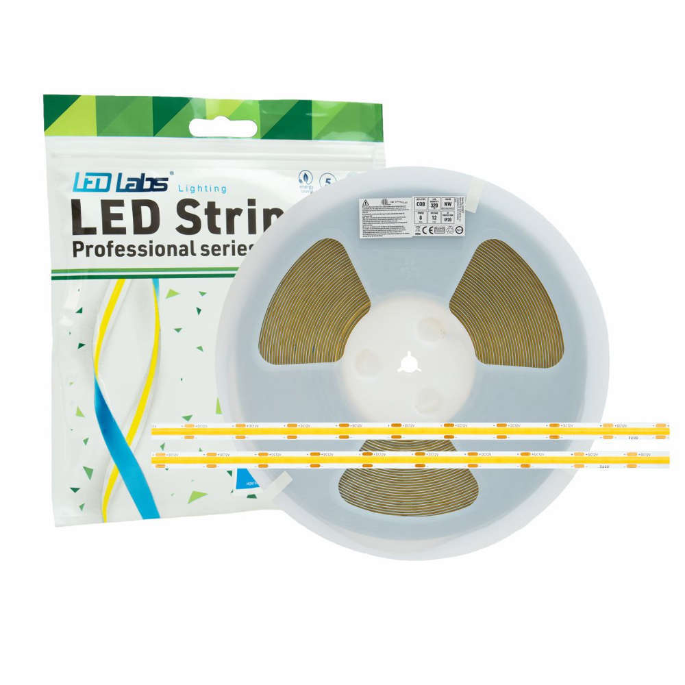 Едноцветна LED лента COB, 12VDC, IP20, 8W/m, 680lm/m, CCT 3000K, димиране PWM, ролка 5 метра