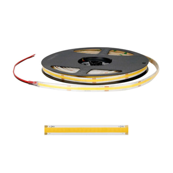 COB LED лента IP66 24109030CPCN, 10W/m, 3000K, 1000lm/m, ширина 8мм, ролка 5м. За бани и външно осветление, рязане през 50мм.