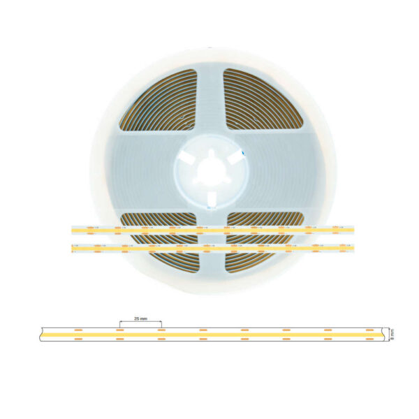 С топлата бяла светлина (3000K) лентата придава комфорт и стил на всяко пространство – от дневни и кухни до търговски обекти и декоративни проекти. Високият CRI ≥90 гарантира естествени цветове и приятно възприятие на осветените повърхности.
