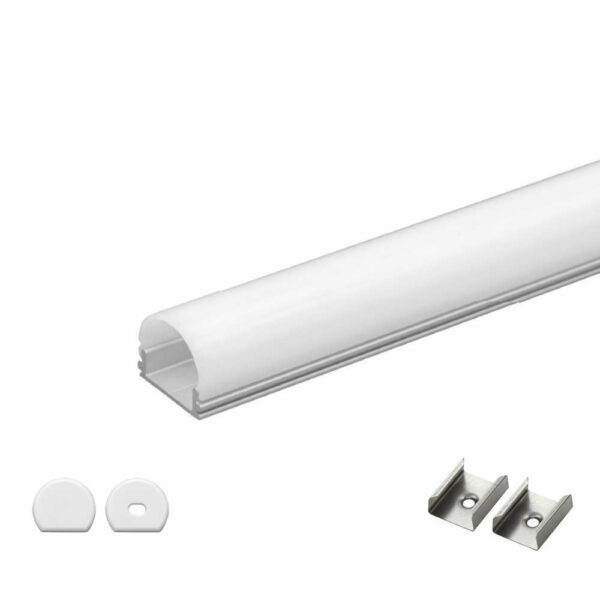 Алуминиев профил Ultralux APN213 за LED ленти за повърхностен монтаж за изграждане на основно или декоративно LED осветление. Декоративният алуминиев профил APN213 допуска монтиране на LED лента с максимална ширина до 10 милиметра. Алуминиевият профил APN213 е с дължина 2 метра и се доставя окомплектован с объл матиран разсейвател, два броя крайни тапи и два броя монтажни скоби.