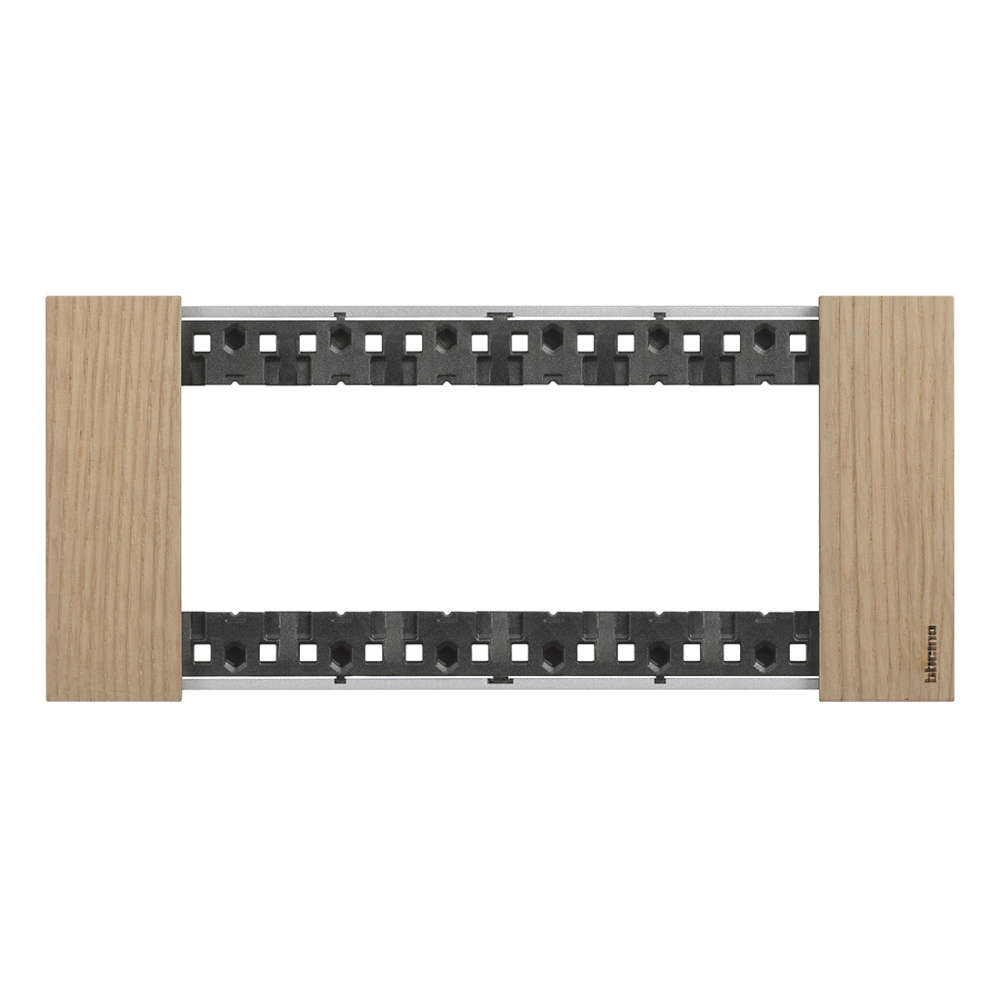 Декоративната рамка BTicino Living Now KA4806LM (италиански стандарт) е модел с 6 модула с финиш OAK | Дъб, предназначен за изграждане на по-големи комбинации от механизми в една обща линия без разделители.