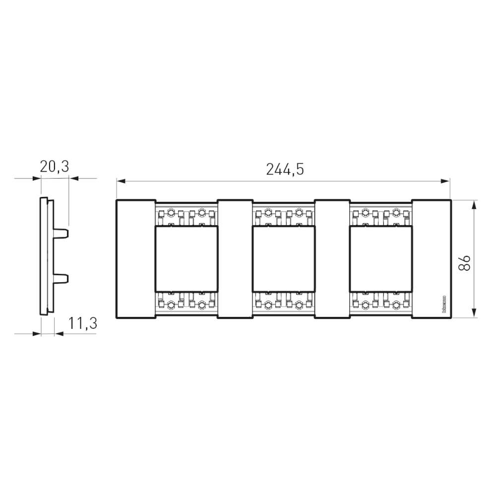 Тройната рамка е предназначена за монтаж по немски стандарт, при който всеки механизъм се монтира в отделна конзола с диаметър Ø71 мм, което позволява ясно структуриране на инсталацията и гъвкаво разположение на отделните функции.