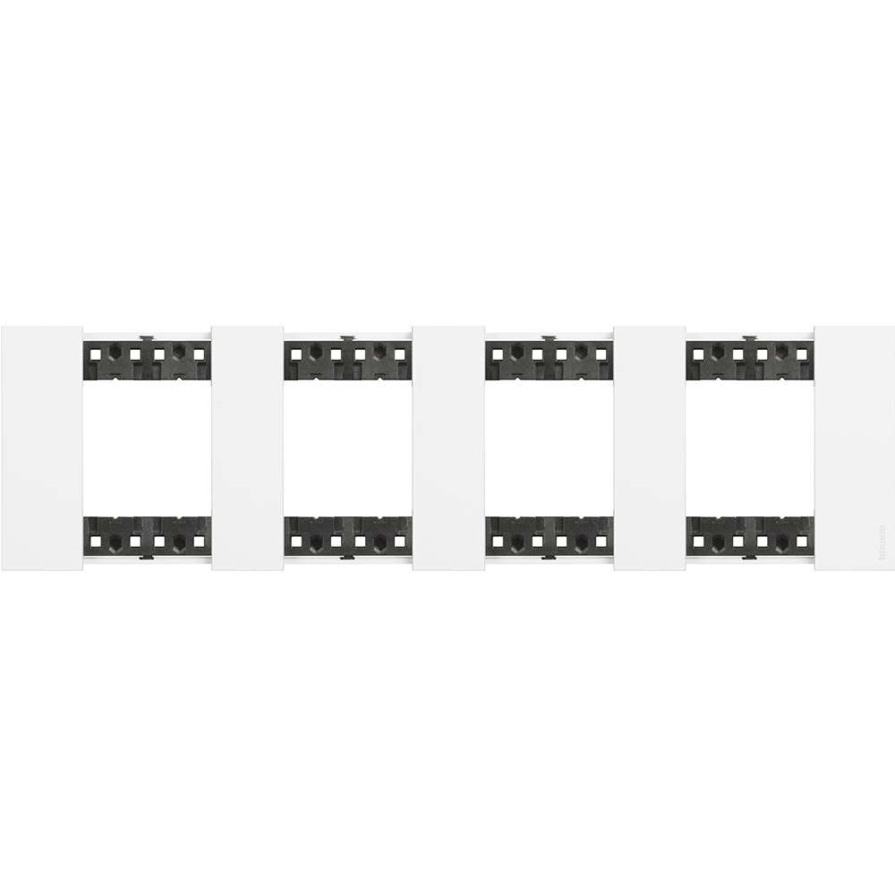 Моделът KA4802M4KW е с хоризонтално подреждане и е подходящ за комбинации от ключове, контакти или други механизми. Обозначението 4x2 модула означава, че рамката побира четири механизма, като всеки от тях съответства на 2 модула по италианската система.